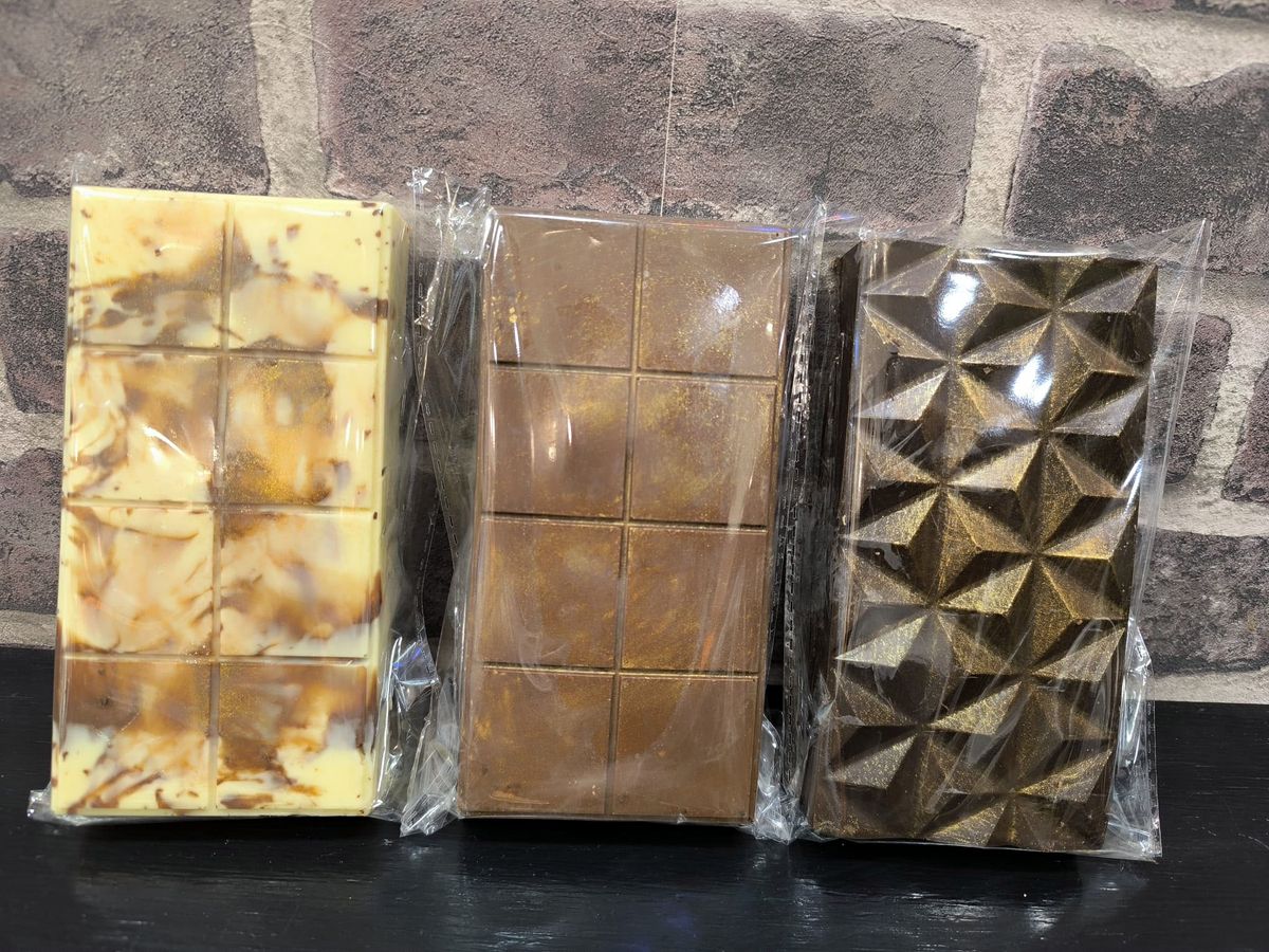 Tableta de chocolate casero estilo árabe, elaborada a mano con ingredientes seleccionados y un toque exótico.